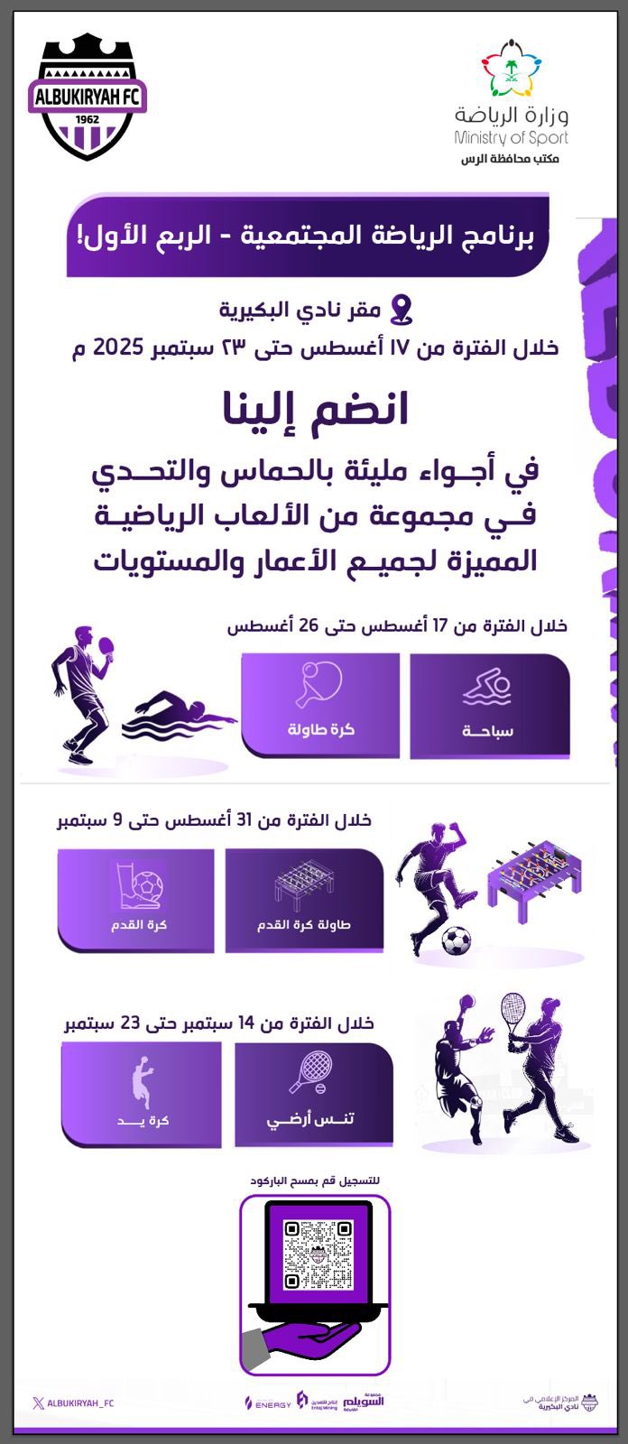 اقامت ادارة الالعاب المختلفة في النادي برنامج الرياضة المتجمعية للربع الاول، والذي اشتمل على ثلاث فترات إحتوت على العاب مختلفة حيث اختصت الفترة الاولى برياضتي السباحة وكرت الطاولة، وحوت الفترة الثانية على رياضتي كرة قدم الصالات ولعبة كرة الطاولة ( الفريره) ، واختتم البرنامج برياضتي كرة اليد ولعبة التنس،،